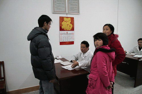 图一:员工正在进行相关检查项目的登记手续