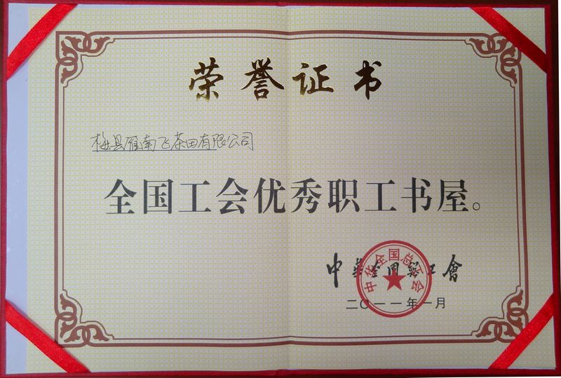 雁南飞茶田有限公司荣获“全国工会优秀职工书屋”称号 |