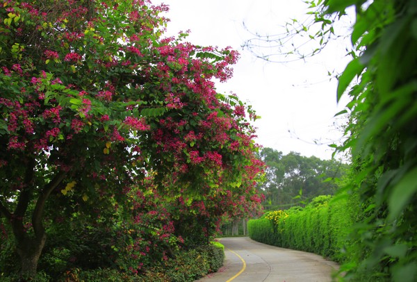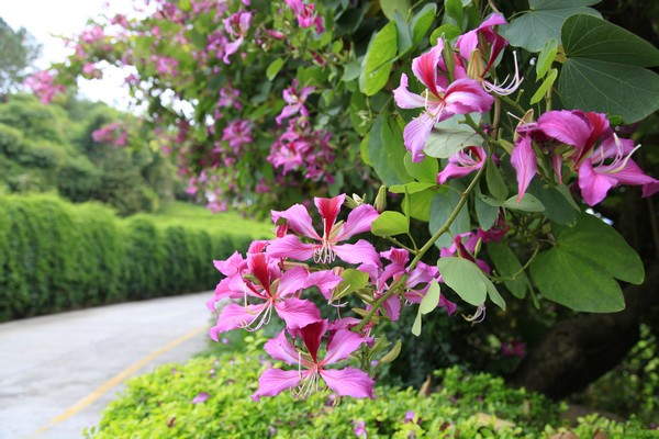 雁南飞种植的紫荆花开得正火,开得绚丽而热烈,楚楚而动人,那阵阵的幽香吸引着蜜蜂喧嚣,彩蝶起舞。看,那紫色的花朵一朵朵挨在一起,就形成了蔟!一蔟蔟的紫荆花挂在树上,就形成了花树!一股股清香从那紫色的花蕊中飘出,弥漫在清晨清新的空气中,就形成了美丽而难得的风景。