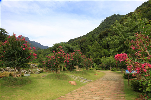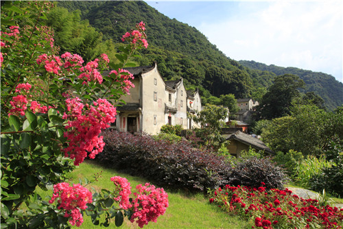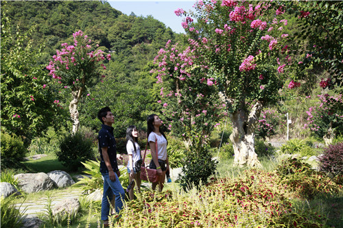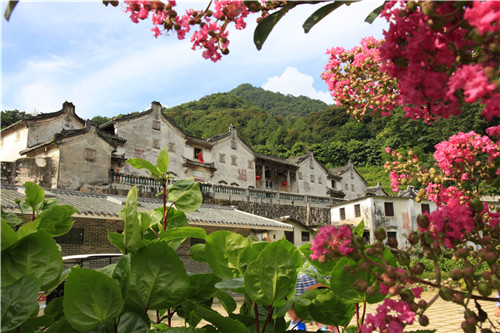 盛夏已至,酷暑难耐,万花凋零,绿树翠减,人们早已厌倦这燥热而又单调的季节,闭着眼睛眼前都是挥之不去的绿,多么希望有一点新鲜的颜色刺激一下这疲劳的视觉。这时桥溪古韵景区内的上百株紫薇花开,万绿丛中一片红,她独自占领了这自然界中的花卉市场,把积蓄了很久的浓艳泼泼洒洒地绽放出来,精神抖擞地从盛夏七月一直开到初秋十月。为这个炎热的季节奏响了最华美的乐章,整个桥溪村的空气中氤氲着紫薇花的芬芳。